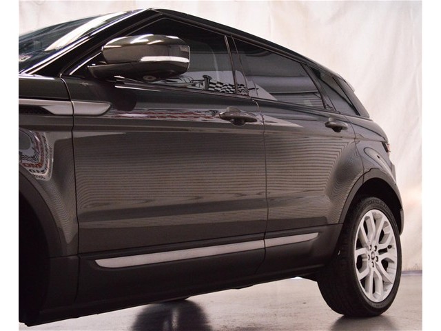 The Range Rover Evoque Pure Plus trim is equipped with a Panoramic Glass Roof, while the Pure Premium version has Adaptive Bi-Xenon Headlights with Automatic High-Beam Assist, Surround-View Camera System, Keyless Passive Entry, and an awesome 825-Watt Premium Surround-Sound Audio System with 17 Speakers.