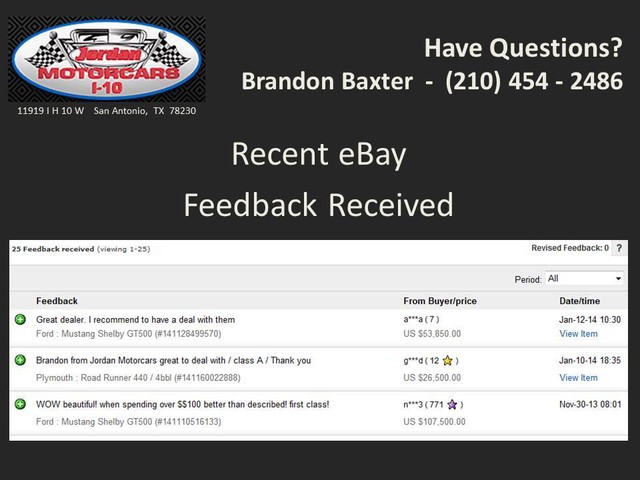 Call Brandon Baxter 210 454-24186 / bbaxter@jordanford.com