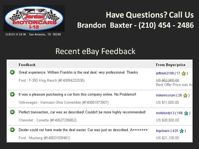 Call Brandon Baxter 210 454-2486 / bbaxter@jordanford.com