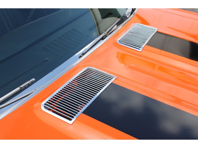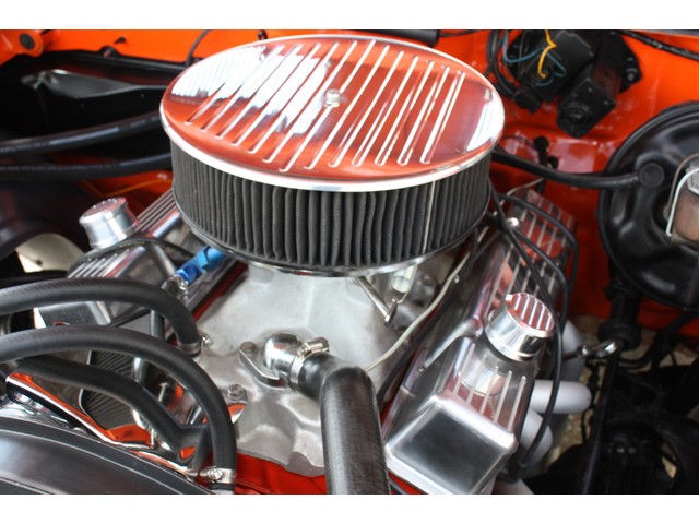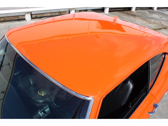 The car was carefully blocked, gone over, and prepped before three coats of DuPont GM HUGGER ORANGE were carefully sprayed on, then it was allowed to dry and prepped for 2 coats of DuPont 74500 clear with 14305S hardener.