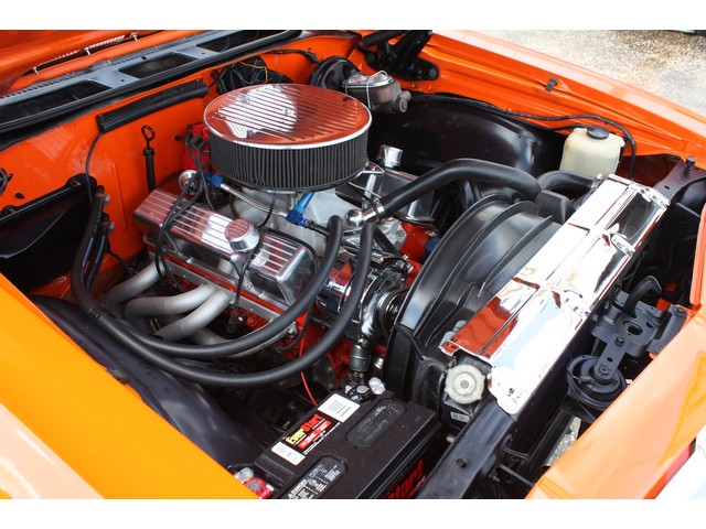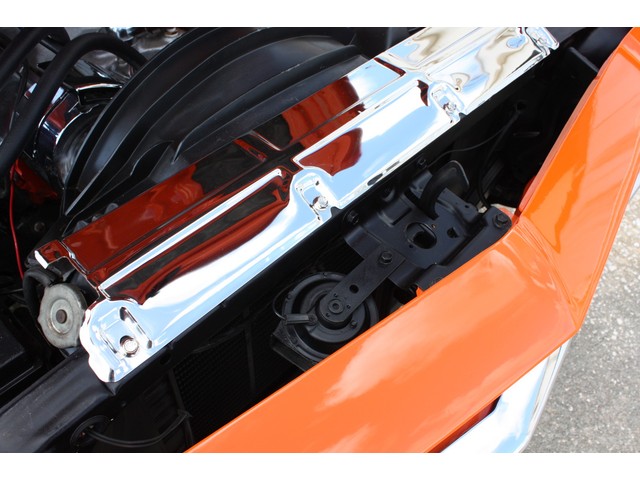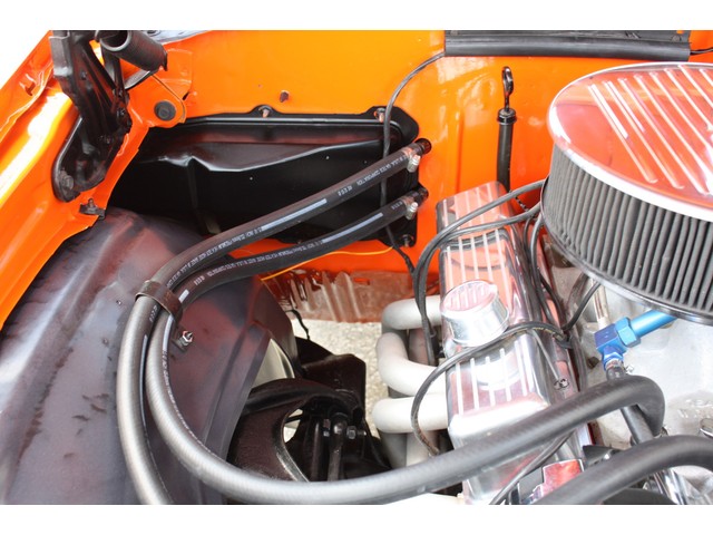 Open the hood, and you are met with an exceptionally clean engine bay, from the new radiator with chrome top panel back to the cleaned and painted firewall. It shows incredibly well, and is as clean as you would expect a freshly built car to be.