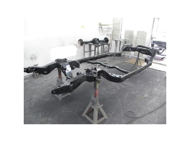 The entire chassis was stripped, coated in rust-preventative, and treated to chassis black before all of the new or refurbished suspension bits were installed again.