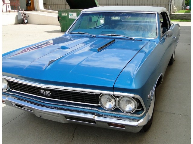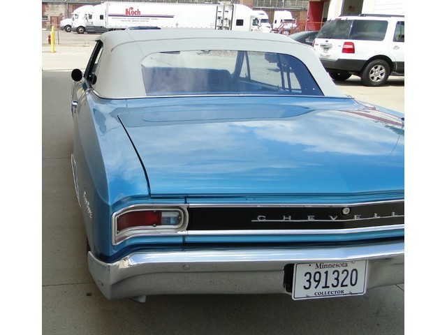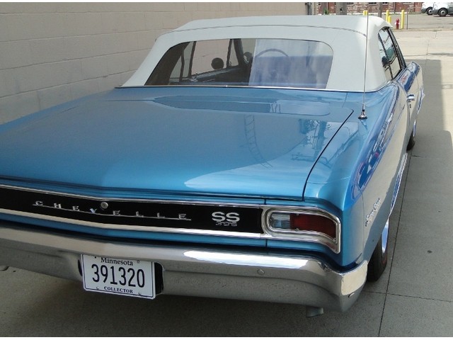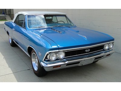 Packed with both style and performance, this is a true Chevelle SS Convertible. The Marina Blue with White top is a striking combination. It's powered by a 4BBL, 396ci/360hp big block engine with automatic transmission, 12 bolt rear, and dual exhaust. This car is very clean and nicely detailed. Options include Power Brakes, Power Steering, working clock, after-market tach and original radio. The body, trunk and floors are solid. It rides on Coker Red Line tires. All accessories work.
