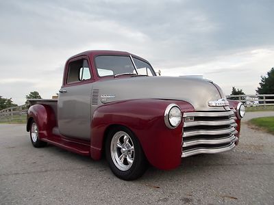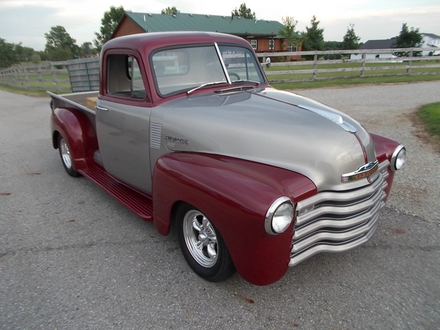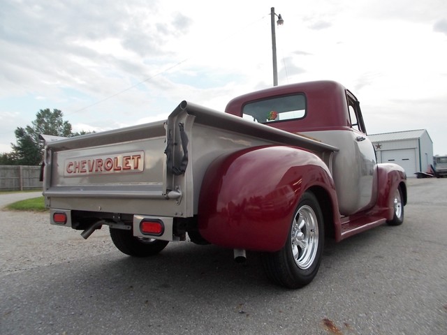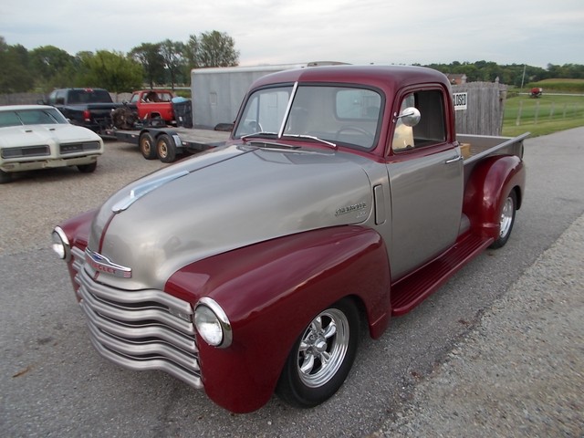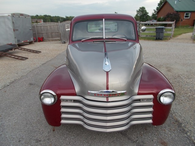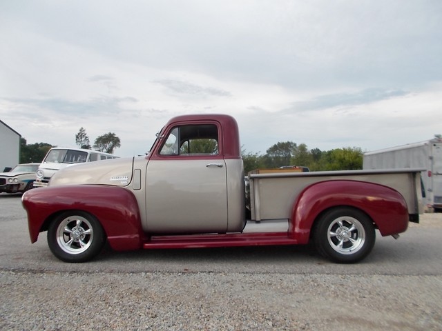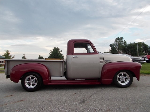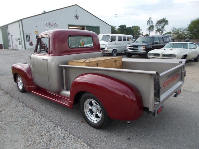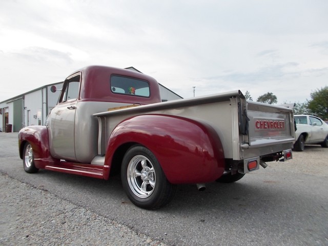 HERE IS A NICE LIL CUSTOM 48 SHORTBED CHEVY THAT HAS A GREAT LOOKING PAINT JOB AND IS A REALLY SOLID TENNESEE BODY. ITS A NICE DRIVER IN # 3 condition. IT WAS BUILT ABOUT 4 YRS. AGO USING 78 CAMARO FRONT END AND POSI REAREND THAT I WAS TOLD 355 GEAR. POWER COMES FROM A 70 MONTE 350 ENG AND 350 TURBO TRANS. SO IT HAS POWER STEERING AND POWER FRONT DISC. ALSO TILT WHEEL. HAS HEADERS AND NICE SOUNDING PIPES. STOCK BUILD ON ENGINE. LAST OWNER SAID IT HAD 70K MILES ON ENG AND TRANS WHEN INSTALLED NOW MAYBE 75K. CLEAR TENNESEE TITLE BEING SOLD IN INDIANA. NO MILES ON TITLE.