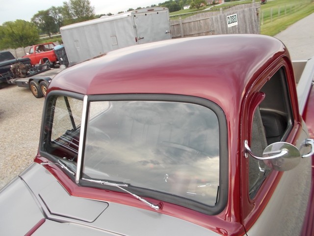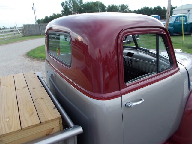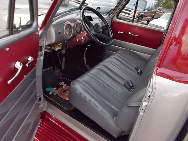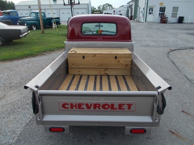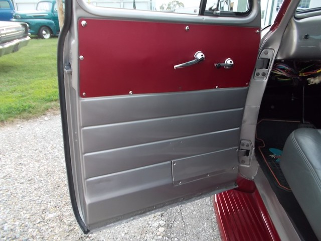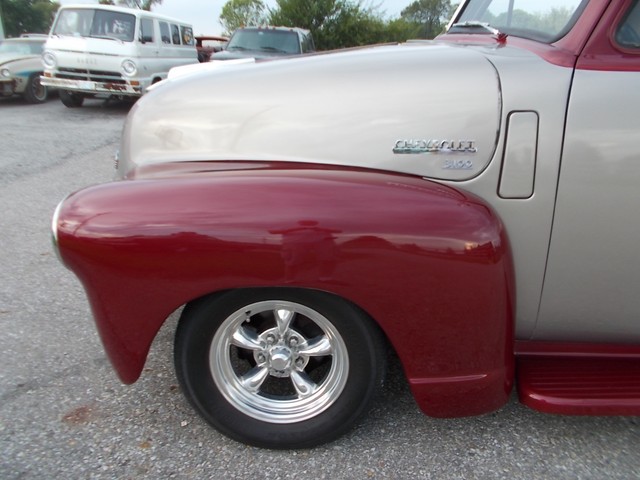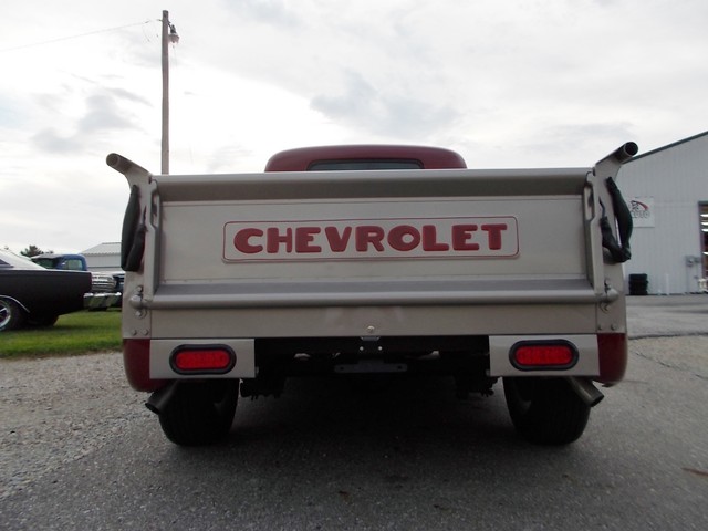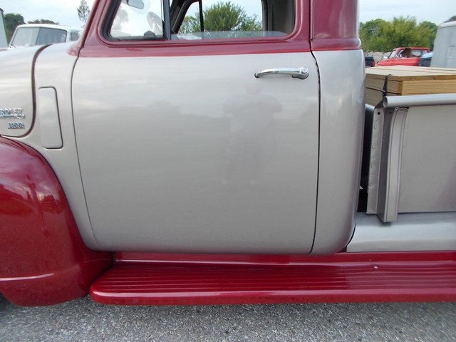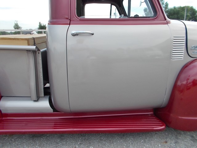 DOORS AND WINDOWS WORK GOOD. IT HAS NEW GLASS, NEW CHROME DOOR HANDLES INSIDE AND OUT, HAS NEW CHROME HOOD ORNAMENT, NEW CHEVY EMBLEM ON HOOD, NEW LIGHT BEZELS AND CHROME SIDE LETTERING. NEW LIGHTS, NEW 15" TORQUE THRUST RIMS AND TIRES, HAS REALLY NICE RED HAND LAYED PINSTRIPING AROUND CAB, ON TAIL GATE AROUND LETTERS AND ABOVE GAUGES. STRIGHT OL TRUCK THAT IS A REAL EYE CATCHER.