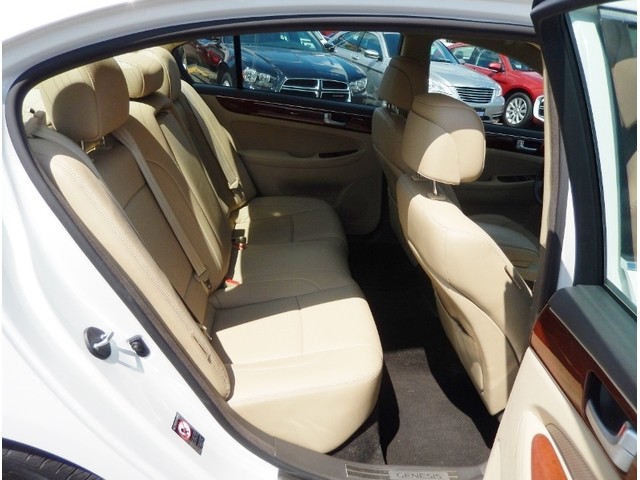 Standard features for the Genesis 3.8 include 17-inch alloy wheels, automatic headlights, LED running lights, foglamps, heated mirrors, full power accessories, dual-zone automatic climate control, keyless ignition/entry, leather upholstery, heated front seats, an auto-dimming rearview mirror, Bluetooth, a seven-speaker audio system with CD player, iPod/auxiliary input and satellite radio.