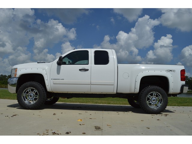 You are looking at a 2008 Chevrolet Silverado 2500HD Extended Cab LT 4x4. It is powered with a 6.0L Vortec V8 and an automatic transmission. It is equipped with power drivers seat, leather interior, power mirrors, power windows,power locks,am/fm/cd player, and receiver hitch. Also included is one keyless remote and owners manuals.Added on features inlcude 33" tires, painted fender flares, and 18" XD wheels.
