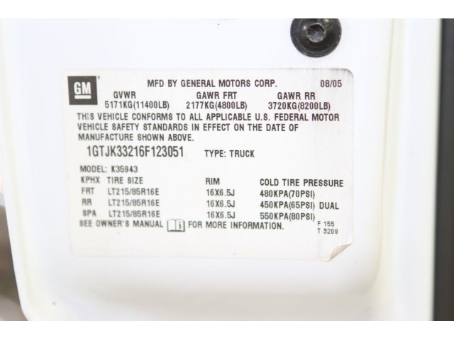 VXS - COMPLETE VEHICLE LABEL | XEF - LT215/85R16/E OOR BW TIRES |