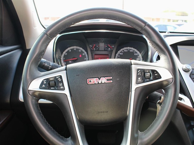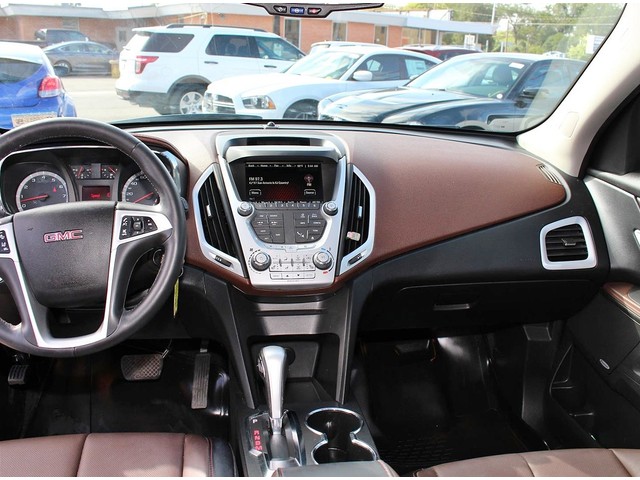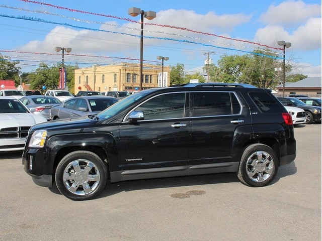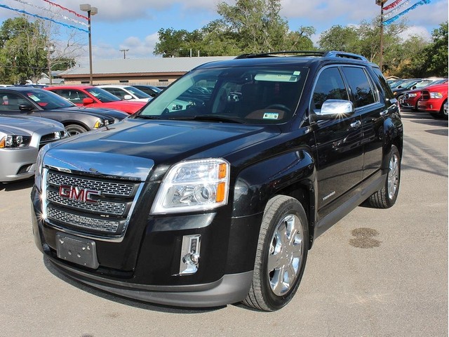 Turn heads in this sleek black 2012 GMC Terrain SLT at a great deal! This spacious SUV is loaded with 2-tone black & brown leather interior, a sun roof, roof rack, MP3, Pioneer audio, SIRIUS XM radio, Bluetooth, OnStar, Navigation, a backup camera, alloy wheels, power seats, cruise control, & fold away back seats for storage. This is a smoke free GMC & the interior is absolutely free of rips, odors, or abuse. This vehicle's 3.0L V6 FlexFuel engine is in perfect working condition for safely hauling the family around! There are no noticeable dings on the exterior, & the shiny extra clean finish makes this used auto look brand new. The tires have at least 3/4 of their life span left, & the low mileage represented is 100% accurate. With a smooth shifting automatic transmission & all power equipment working properly, each ride will be one of comfort & pleasure!