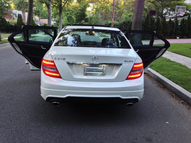 A BEAUTIFUL 2012 MERCEDES BENZ C300 4MATIC SPORTS SEDAN. FINISHED IN WHITE METALLIC ON BLACK LEATHER INTERIOR. WITH ONLY 29,322 MILES ON THE CLOCK, THIS MERCEDES IS A TRUE BEAUTY. LOADED UP WITH NAVIGATION, PREMIUM PACKAGES WITH BLUETOOTH CAPABILITIES AND A FACTORY UPGRADED SOUND SYSTEM AND iPOD. 4-MATIC ALL WHEEL DRIVE SYSTEM WITH A COLD WEATHER PACKAGE INCLUDING HEATED MIRRORS, HEATED SEATS, FOLD DOWN REAR SEAT ACCESS AND HEADLAMP WASHERS. SPORT PACKAGE WITH FULL SPORT WHEELS. AMG APPEARANCE PACKAGE. LED LIGHTING PACKAGE. RUNS AND DRIVES LIKE A DREAM WITH NO SHIMMYING AT THE WHEEL. VERY WELL PRISTINE KEPT C300. THIS CAR IS READY TO GO. NEW CONTINENTAL TIRES. CLEAN CARFAX CERTIFIED VEHICLE WITH ABSOLUTELY NO PRIOR ACCIDENTS. FEEL FREE TO CONTACT WITH ANY QUESTIONS.