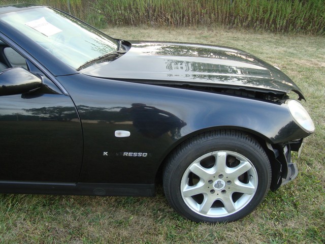 As seen in the pictures down below this nice looking 2000 Mercedes SLK230 Kompressor Hard Top Convertible with only 92k miles has a light front end damage. This vehicle was directly purchased from insurance auctions for resale in the condition you see it on the pics. No middle man involved. We have the salvage certificate of title (no-liens) at hand and ready to transfer to the new owner. Such vehicles can be legally returned back to the roads after repairs and your state motor vehicles inspection. Damaged areas are clearly shown in the pictures below. Looks like it was a direct hit to the center of the bumper rebar. The dented rebar did not touch the radiator. Front cooling components (radiator, condensor, fans..etc) all look to be reusable and radiator reservoir still has fluid. We ran the car for several minutes and did not observe any leaks. AC blows ice cold air! All airbags are ok. All glass ok. Left headlight is broken, Right one is good. The rest of the body is in great condition with great looking paint. The good news is that the car starts, engine runs great, goes into gear and we are able to drive it around within our lot. Interior is in good condition as seen in the pictures down below. Comes with the special dual done interior. Has great looking tires. Power convertible top opens/closes fine with the push of a button. Overall should be a straight forward easy fixer with very light body work and many used parts available either here on ebay or at online junk yard website car-part.com. Overall great condition of the car indicates that it was a well maintained vehicle and mot likely garage kept. See below photos for overall condition and please ask questions before making a purchase and not after.