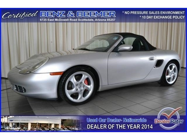 Boxster S! New Soft top installed! This sporty soft top roadster features AM/FM/CD, climate control, power seats and much more! A cool Meridian Metallic Silver exterior matched with Black leather interior! Certified Benz & Beemer will strive to provide you, our valued customer, with the following: The highest quality preowned vehicles that represent the best value anywhere. A friendly and comfortable shopping experience with zero pressure. A totally transparent process providing you with our best upfront pricing, a CarFax history report, our service inspection report, a Kelly Blue Book report, and a market analysis report. A 3 month/3000 mile warranty on certified vehicles and a 10 day trial exchange policy for your peace of mind. We promise the best possible buying experience you have ever had. We are proud to have been presented the Used Car Dealer of the Year for Arizona in 2012 and the Used Car Dealer of the Year for the Nation in 2013, awarded by DealerRater.com for superior customer satisfaction. DealerRater is the most trusted source of automobile dealership and service center reviews. Car dealers are rated on the criteria of customer service, quality of work, friendliness, price and overall experience.
