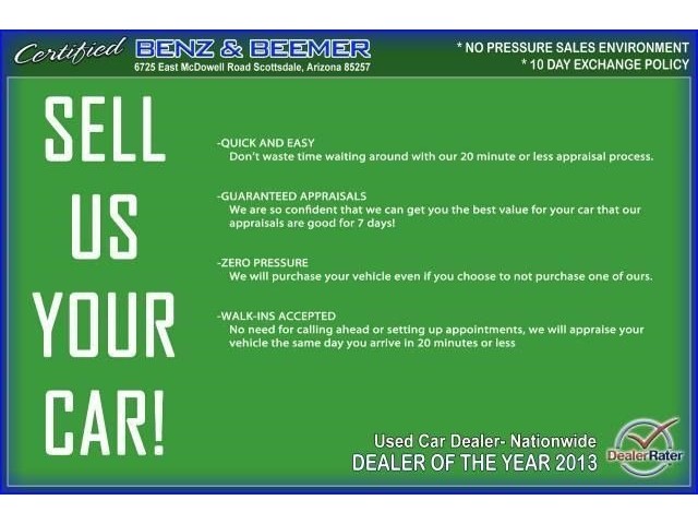 We carry a large selection of all types of luxury pre-owned vehicles including BMWs, Mercedes-Benz, Lexus, Hummer, Land Rover, and much more! With over 200 vehicles at one giant location, enables you to pick out the best vehicle that fits you, and your budget. If we do not have the vehicle you are looking for at the time, we will take the time to search for the one that you are looking for! Friendly Staff All of our staff members are friendly and knowledgeable that creates a zero pressure environment and a great atmosphere. Financing We offer financing on all vehicles for everyone! We are a proud member of Credit Union Direct Lending, offering you a wide range of competitive finance options and rates right at the point-of-sale, completely hassle free. Our knowledgeable finance staff will get the job done for you! Full Disclosure We are a full disclosure dealership. Our commitment is to provide you with all the information you would need so you can make an informed and confident decision. We offer you a full Car Fax history report, a Kelly Blue Book print out, and a detailed list of mechanical procedures done to the vehicle from our Certified Auto Service. Conveniently Located We are conveniently located at 6725 East Mc Dowell Rd, Scottsdale, AZ 85257. Located only a 10 minute drive from Sky Harbor Airport, with free pick up for our out of town quests.