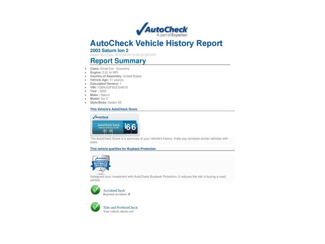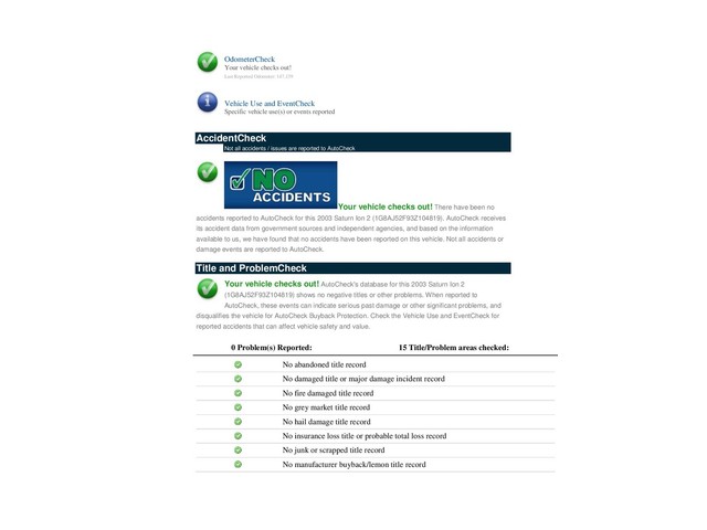 This ION has a clean Auto Check report which has been provided as you can see. There are no accidents or issues to report.