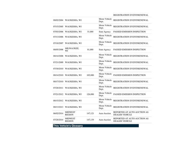 Fee and Tax Information:Attn to all WI buyers: Your are purchasing from a licensed dealer in the State of WI. If you are a WI resident I am required to collect your Tax (varies by county), title fee $69.50, and registration fees (typical auto $75 or by weight on trucks). These fees are in addition to the price sold on ebay. Tax title and reg fees are NOT included in the price. If you have a current valid WI plate in the same name vehicle will be titled in and of similar type the plate can be transferred at no cost.