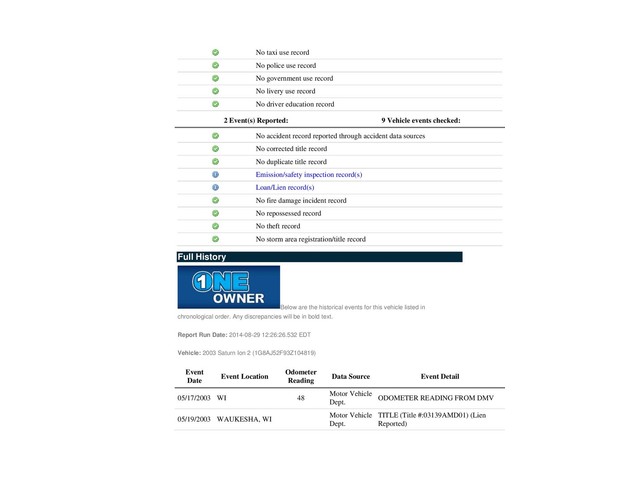 This Ion has only had 1 single owner since brand new. It drove off the lot on 5/17/2003 with 48 miles on the odometer.