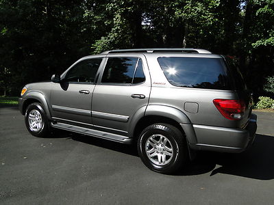 Thanks for Looking ..ONE-OWNER CARFAX CERTIFIED...All MAJOR Services recorded in the CARFAX report .. Which if you Would call me I can fax or send you a text PIC of the complete report for free.. Autocheck as well .. Sequoia Limited has almost NEW Michelin's ... Large screen DVD player. Heated seats .Rear A/C & Heat. JBL Sound System. . .Power Sunroof. Running Boards . The only small blemish is a small split in driver seat (pictured).. Inspections PRE-sale are welcome . Shown by appointment only .Please call Alan Hall 770-294-5269 . Airport P/U is easy "ATL"..Shipping in or out of country can easily be arranged. Trades are accepted please call Early for a Real # that you can count on either up front or at the close of the bidding process.100% Seller FEEDBACK.. BID with Confidence Bid to WIN !!... High BID WINS .Q's call Alan @ 770-294-5269