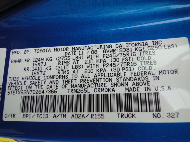 • VIN: 5TETX62N79Z647366