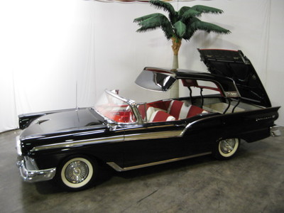 It was the sort of technical wonder Americans expected as the "space age" beckoned in the 5)’s. At the touch of a button three roof drive motors drive four lift jacks, four door-lock motors, ten solenoids, four locking mechanisms folds the front of the roof under the and retracts it under the rear decklid and closes out of sight. It’s a complex mechanism which has wonderful reliability. It is a surefire to always amaze and please the crowd.