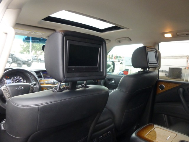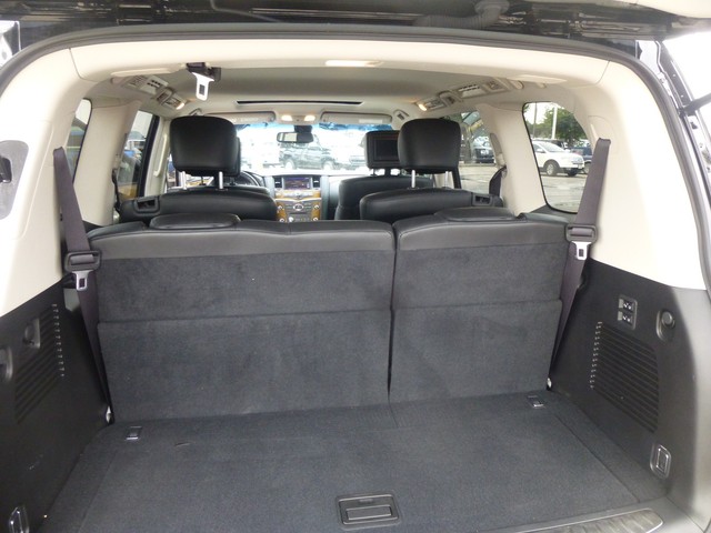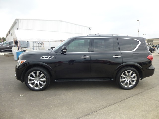 We use CarFax Title History Report to give you confidence when you buy from us. It has had only one previous owner, is accident free and comes with a CarFax Buy Back Guarantee. Come by today to see this one in person. Ride in style with this 2013 QX56's fabulous leather seating. Premium 'turn-by-turn' navigation system included. Increase your safety with the included anti-theft system. Features include: aluminum wheels, cruise control and airbags.