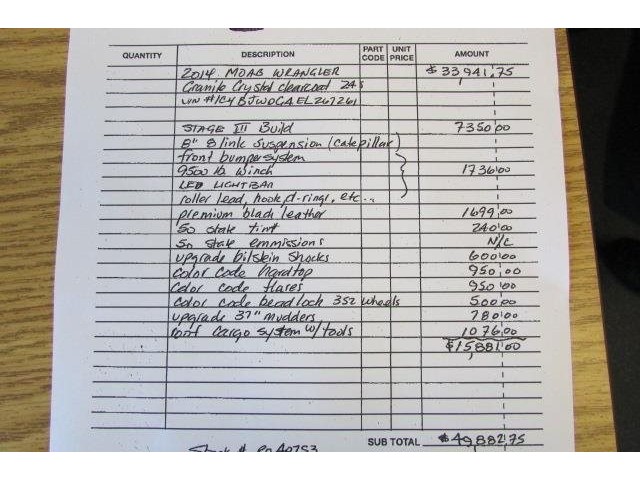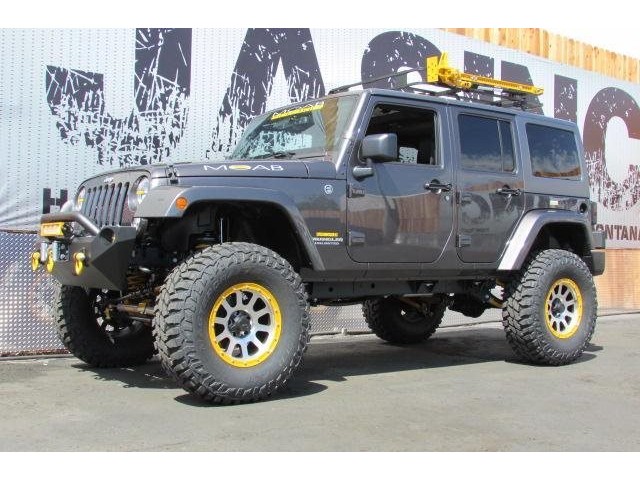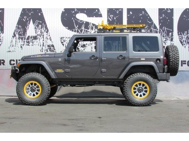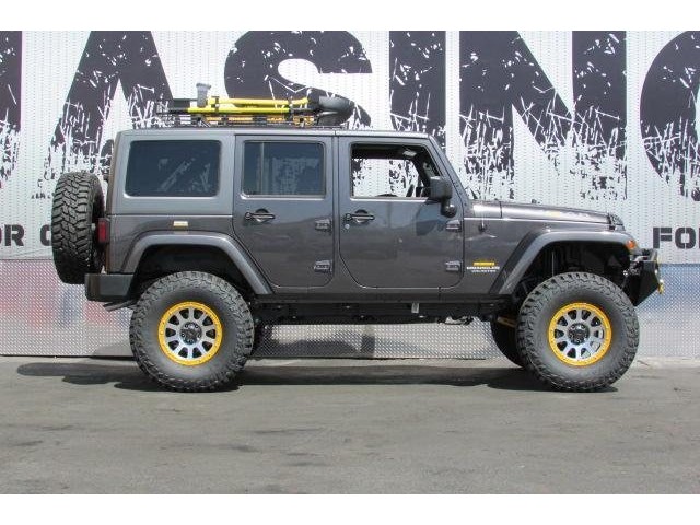 This 2014 Jeep Wrangler Unlimited 4dr 4WD 4dr Willys Wheeler 4x4 SUV features a 3.6L V6 CYLINDER 6cyl Gasoline engine. It is equipped with a 6 Speed Manual transmission. The vehicle is Granite with a Black interior. It is covered by a limited warranty. - Brand New Vehicle 2014 Jeep Wrangler 4WD Unlimited Sport Standard Features Power Windows\, Power Locks\, Power Mirrors\, Power Seats\, CD Player\, AM/FM Radio\, Premium Audio\, Portable Audio Connection\, Steering Wheel Controls\, Cruise Control\, Traction Control\, Tilt Steering Wheel\, Keyless Entry\, Leather Seats\, Tinted Glass. Upgrades 8 inch Moab Suspension\, Moab LED Lightbar\, Bilstein Shocks\, MB Chrome Wheels with Yellow Accent\, 37 inch Mudders\, Surco Roof Rack with Axe\, Shovel\, High Center Jack\, CRF Front Bumper\, Smittybilt 9\,500 lbs. Winch\, Premium Black Leather\, Color Matching Hard Top and Flares. Warranty Information Jim's Auto Sales\, INC. 30 day worry free guarantee with CARFAX certification. - Air Conditioning\, Cruise Control\, Power Steering\, Power Door Locks\, Clock\, Tachometer\, Tilt Steering Wheel\, Steering Wheel Radio Controls\, Driver Airbag\, Passenger Airbag\, ABS Brakes\, Fog Lights\, Intermittent Wipers\, AM/FM\, CD Player\, Four Wheel Drive\,\, Off Road Tires\, Child Proof Door Locks\, Aux. Audio Input\, Roll Stability Control\, Center Arm Rest\, Vanity Mirrors\, Premium Sound - Contact Harbor City: 310-830-0033 / Lomita: 310-784-0600 / Fontana: 909-452-8262 at See-Locations or admin@jimsautosalesla.com for more information. -