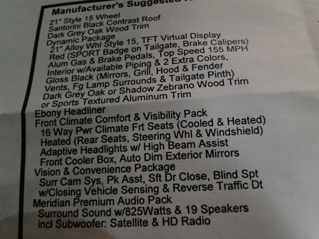 Dynamic Pkg which includes: Soft Close Doors, Full TFT Virtual Display gauges, Red "SPORT" Badging, Red Brake calipers, Top speed raised to 155 mph, Interior trim in Two colors with Black piping, Gloss Black Mirrors, Gloss Black Hood Grills, Gloss Black Front Grill, etc.