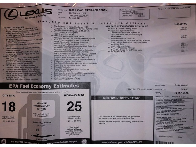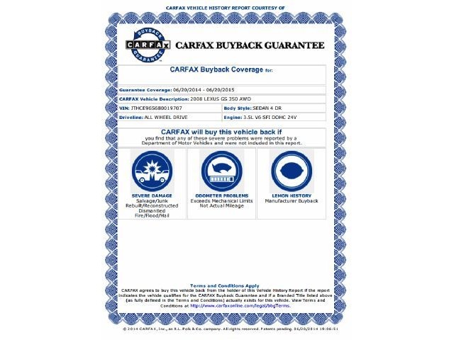 2008 Lexus GS350 - Premium Package - (All wheel Drive) In Like new condition .. 3.5L V6. Sport Package, Winter Package, Technology Package . Fully Loaded...... Backup Camera, Parking Distance Assistance (Front & Back) , Bluetooth, Sun/Moon Roof....Super low miles of 47K Miles .. Runs and drives like a new GS350 .. Feels and looks Excellent !! This car drives amazing and is in excellent condition. Bought as NEW by the Orig Owner - meaning that you will be the second owner of the beautiful vehicle. The car has been kept under great care and has followed regular suggested maintenance schedule. Features: - Deep Sea Blue With Genuine Beige Leather and Wood Trim - Always Garaged - 3.5 Liter 303 HP Direct Injection 24-valve V6 Engine - 6-Speed Sequential Shift Automatic Electronically Controlled Transmission w/Intelligence - 17" Alloys Wheels - DRL/SRS/ABS/Brake Assist & Traction Control - Theft-Deterrent System w/ Engine Immobilizer - HID Headlights - Tire pressure monitor system - Smart Access with Push Button Start/Stop (Keyless system) - Perforated Leather Trim w/Memory System - Moonroof / Sunroof - Heated Outside Mirrors - Heated and Cooled Driver and Front Passenger Seats - 10-speaker Premium Audio System w/ AM/FM/6-Disc in-Dash CD Changer - 7" Touch Screen - Bluetooth for cell phone - Voice Command - Navigation System - Backup Camera and Packing assist - Trunk Mat, Cargo Net, and All weather Mats - Rain Sensing Wiping - Integrated Garage Door Opener - Leather is in perfect shape, the car rarely had people in the back seat. - Non-smoker - No Accident, One Owner Any Questions, I'm around at 732 64O 807Six 2008 Lexus GS350 AWD In Like New Condition .. Clean Carfax .. One Owner .. Never Painted.