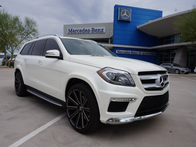 2014 Diamond White Metallic GL550 4MATIC, Almond Beige Leather Interior, Burl Walnut Wood Trim, Wood/Leather Steering Wheel, Trailer Hitch, Rear Seat Entertainment, PARKTRONIC w/Active Parking Assist, KEYLESS-GO, Power Liftgate, Soft-Close Doors, Manual EASY-ENTRY to 3rd Row Seats, Flat Folding 2nd and 3rd Row Seats, Bi-Xenon Headlamps w/Adaptive Highbeam Assist, COMAND System w/Navigation, Bluetooth Connectivity, mbrace2 w/MB Apps, harmon/kardon LOGIC7 Surround Sound System, Power Heated and Ventilated Front Seats w/Memory and Lumbar Support, 3-Zone Automatic Climate Control, Surround View Camera System, LED Daytime Running Lamps, Garage Door Opener, Auto-dimming Mirrors, Bluetooth, Anti-theft Alarm System, and Much More, Ready For Immediate Delivery***Contact Our Mercedes-Benz of Arrowhead Sales Department at 623-815-3900****Price Includes Tint & After-Market Wheels