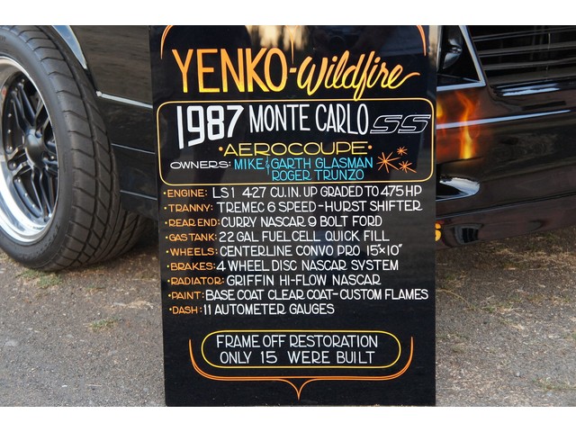 I was floored when I first laid eyes on this 1987 Monte Carlo SS converted to what has to be the best AEROCOUPES (just over every created. This one was restored by Bill Rea and long time friend of Don Yenko. He was commissioned to do 20 cars and as of today 10 have been completed with this being #7. There are over 2400 hours in this car total with two fully restored versions taking place. OVER 130k BETWEEN THE TWO. That's love because the price for we are hoping to achieve is under a third of that.... THE ONLY PARTS THAT ARE ORIGINAL IS THE FLAWLESS BODY!EVERYTHING ELSE HAS BEEN UP GRADED WITH THE FINEST PARTS AVAILABLE. THE WALLET WAS ON WILDFIRE! The engine is an 11k mile LS1 with 475HP and runs like it belongs to somebody who has a stack of info two inches thick along with all the financial records over the years and the TEMTREC 6 SPEED makes for the most enjoyable rides you can "throw together" CURRY NASCAR REAR END COMPLETE HOTCHKIS SUSPENSION AIR CONDITION (COLD) NASCAR FUEL CELL NASCAR RADIATOR (PARADES FOR MONTHS) COOLING FANS HAND STITCHED LEATHER SEATS CARBON FIBER DASH 4 WHEEL DISK BRAKES THAT WOULD STOP A TRAIN