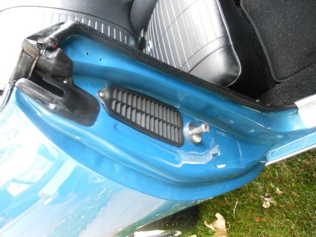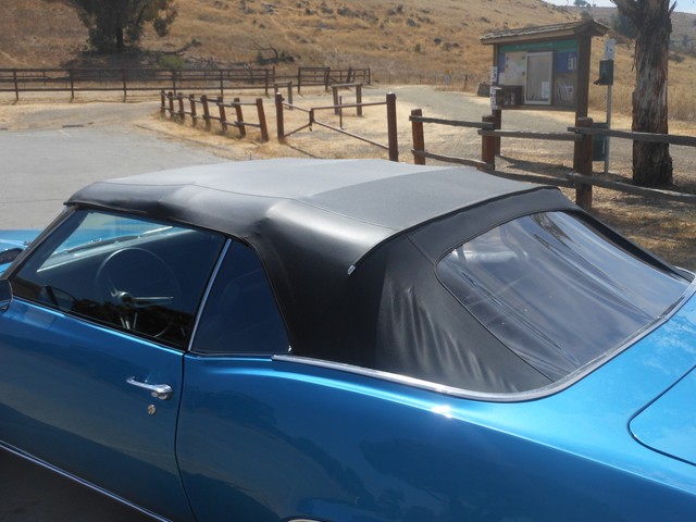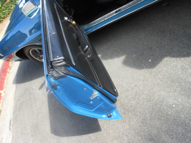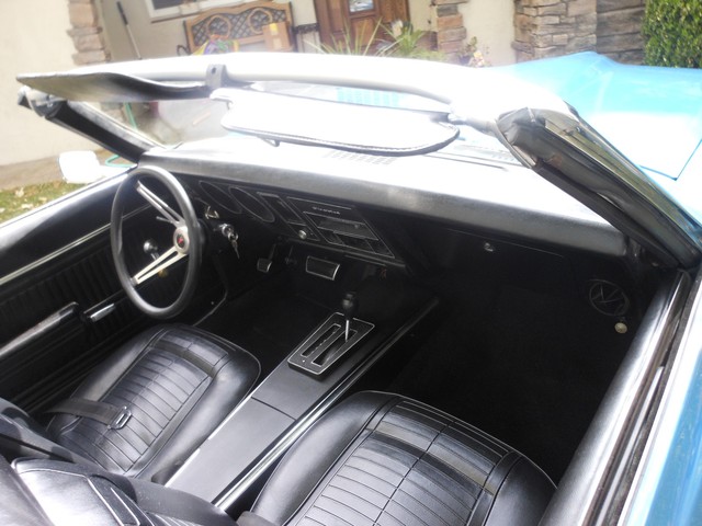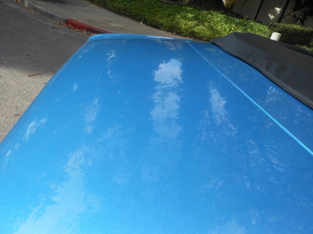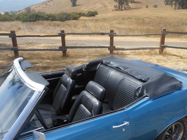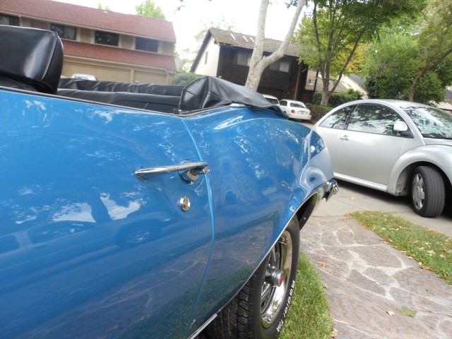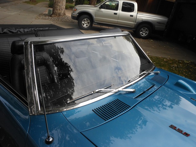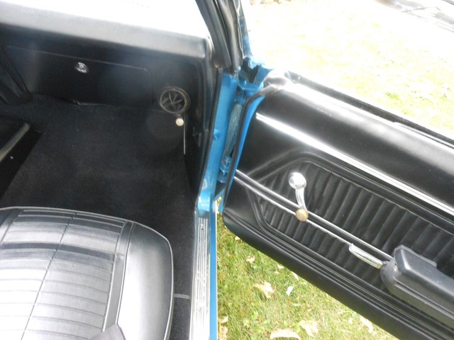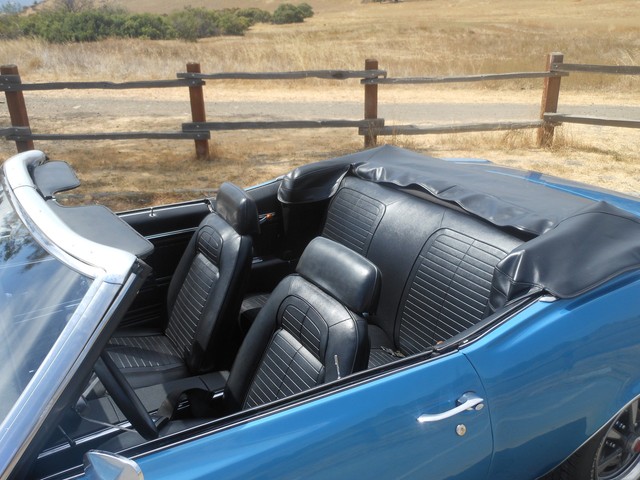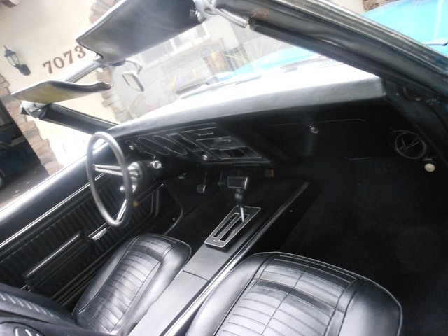The beautiful Lemans blue paint really pops in the sun, the car still looks like it’s wet, the way the clear shines. This is because the car had a high-quality 2-stage paint job with a color sand and buff to finish it off. There is no orange peel on this car; you can use the panels for mirrors. Before the car was painted, all the original paint was stripped away and we looked at the body. All the panels were in excellent condition, so none needed replacement; it still has the panels it left the factory with. This goes for the floor-boards as well, they are original and in great shape, no rust! Next we restored the interior. The car received a new dash pad, new convertible top, new carpet, new seat covers. The seats are very comfortable and firm.
