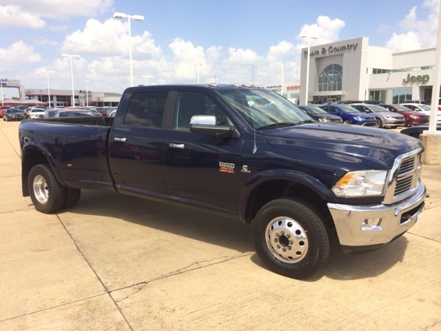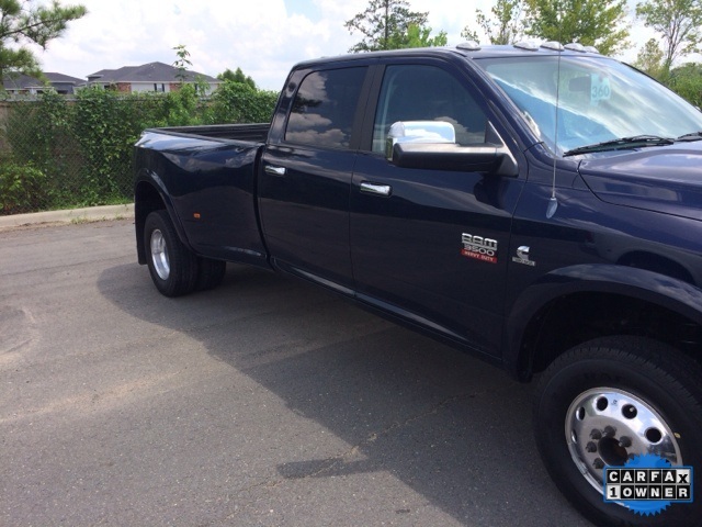 Navigation, Leather, Cummins 6.7L I6 Turbodiesel, and 4WD. This one owner 2012 Dodge Ram 3500 Laramie Crew Cab DRW is nicely equipped with features such as 4X4, 10 Speakers, 115V Auxiliary Power Outlet, 4-Wheel Disc Brakes, ABS brakes, Air Conditioning, AM/FM radio, Audio memory, Auto-dimming Rear-View mirror, Automatic temperature control, Bumpers: chrome, CD player, Compass, Delay-off headlights, Driver door bin, Driver vanity mirror, Dual front impact airbags, Dual front side impact airbags, Dual rear wheels, DVD-Audio, Front anti-roll bar, Front Center Armrest w/Storage, Front dual zone A/C, Front fog lights, Front reading lights, Fully automatic headlights, Garage door transmitter, General Brand Tires, Heated door mirrors, Heated Front Seats, Heated front seats, Heated steering wheel, Illuminated entry, Leather steering wheel, Leather Trim 40/20/40 Bench Seat, Memory seat, MP3 decoder, Navigation System, Occupant sensing airbag, Outside temperature display, Overhead airbag, Overhead console, Panic alarm, Passenger door bin, Passenger vanity mirror, Power 10-Way Memory Driver & 6-Way Passenger Seats, Power door mirrors, Power driver seat, Power Lumbar Adjust, Power passenger seat, Power steering, Power windows, Radio data system, Rear 60/40 Split Folding Seat, Rear seat center armrest, Rear step bumper, Remote keyless entry, Security system, Speed control, Split folding rear seat, Steering wheel mounted audio controls, Tachometer, Tilt steering wheel, Trip computer, Turn signal indicator mirrors, Variably intermittent wipers, and Voltmeter. This truck has plenty of passenger space and cargo room galore. Call us at (888)718-8238 or visit us online at www.hebertstandc.com 24/7 for great internet deals!