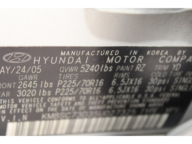 Vehicle Description**ALL WHEEL DRIVE**, **CLEAN AND CLEAR CARFAX HISTORY REPORT**, **KEYLESS ENTRY SYSTEM**, **ONE OWNER**, **PREMIUM ALLOY WHEEL GROUP**, **PREVIOUS SERVICE HISTORY AVAILABLE FOR VIEWING**, and **RECENT FAIRFAX CUSTOMER TRADE-IN**. ***BUY WITH CONFIDENCE 7 DAY EXCHANGE POLICY ON EVERY PURCHASE**EVERY VEHICLE IS SAFETY AND PERFORMANCE INSPECTED BY CERTIFIED VIRGINIA STATE INPECTORS**There is no better time than now to buy this good-looking 2005 Hyundai Santa Fe. This superb Santa Fe is the SUV with everything you'd expect from Hyundai, and THEN some.AT FAIRFAX HONDA WE PERFORM A 150 POINT SAFETY AND PERFORMANCE INSPECTION ON EVERY PRE-OWNED VEHICLE BEFORE IT IS OFFERED FOR SALE. WE PRIDE OURSELVES ON OUR INTERNAL SAFETY STANDARDS EXCEEDING THOSE REQUIRE BY THE STATE SAFETY INPECTION. OUR TECHNICIANS PERSONALLY TEST DRIVE EACH VEHICLE FOR DRIVABILITY AND PERFORMANCE. THIS ALLOWS US WITH CONFIDENCE TO OFFER EVERY CUSTOMER A 7 DAY EXCHANGE POLICY TO GUARANTEE YOUR SATISFACTION WITH YOUR PURCHASE. WE LOOK FOWARD TO PROVIDING YOU THE BEST EXPERIENCE IN NORTHERN VIRGINIA, WASHINGTON, AND MARYLAND. SEE YOU SOON AT FAIRFAX HONDA VOLVO AND VOLKSWAGEN. ****THE GIANT****!!!! Features & Options4-Wheel Disc Brakes A/C ABS AM/FM Stereo Adjustable Steering Wheel Aluminum Wheels Bucket Seats CD player Cargo Shade Cassette Child Safety Locks Cloth Seats Conventional Spare Tire Cruise control Driver Air Bag Driver Illuminated Vanity Mirror Driver Vanity Mirror Floor Mats Fog Lamps Four Wheel Drive Front Reading Lamps Front Side Air Bag Heated Mirrors | Intermittent Wipers Keyless Entry Leather Steering Wheel Pass-Through Rear Seat Passenger Air Bag Passenger Air Bag Sensor Passenger Illuminated Visor Mirror Passenger Vanity Mirror Power Door Locks Power Mirror(s) Power Outlet Power Steering Power windows Premium Sound System Privacy Glass Rear Bench Seat Rear Defrost Security System Tires - Front All-Season Tires - Rear All-Season Traction Control Variable Speed Intermittent Wipers |