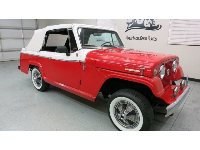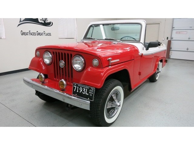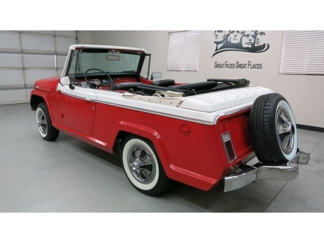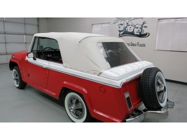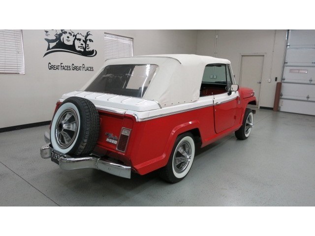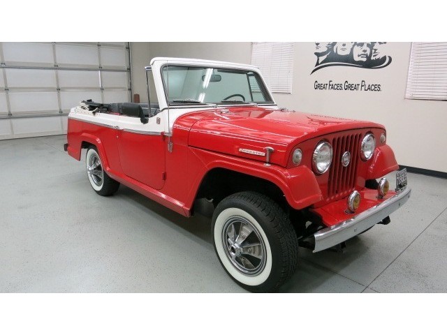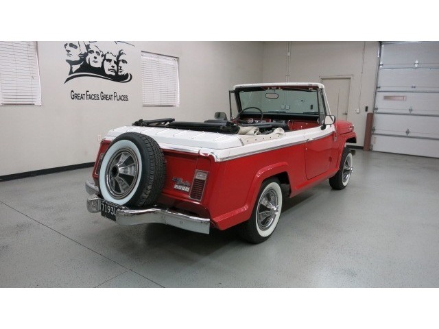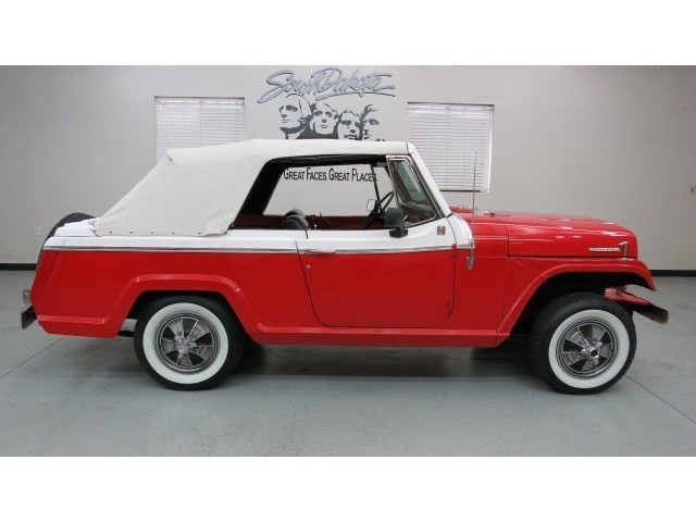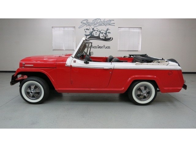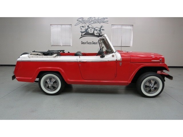 1967 Kaiser/ Jeep - Jeepster C-101 Commando Convertible 4x4 California heritage survivor in Red gloss & White finish factory colors w/ White convertible top.The black vinyl bucket seat interior w/ rear bench seat is all excellent w. no rips, tears, fading etc... * Just 66,712 orig. miles and it shows !! Solid and straight body top to bottom !! Powered by the Buick tried and true 225 C.I. "Dauntless" V-6 w/ 160 H.P. and paired with the 3 speed automatic transmission . It has a "Dana" limited slip rear axle as well. This rare and well loaded gem also has "ICE COLD" factory air conditioning, pwr. steering, pwr. brakes, am / fm cd. stereo / satellite radio w/ rear compartment box encased rear speakers, also functional fog lamps, heat / defroster,carpeting,front / rear seat belts, new white wall radial tires, full size rear mounted spare tire,Jeep raised tower wheel covers and much more !! Beautiful chrome and bright work, emblems all nice and intact. Runs and drives excellent !! Call today....Chris @ (605) 201-2109 cell / e-mail to: thequinnman@hotmail.com Thank you for taking a look !! The classic C-101 Jeepster Commando’s clear fun factor irresistible charm and rarity have made it a favorite among many !!. Re-introduced by Kaiser Jeep in 1967 the Jeepster was available in several models IE: as a convertible roadster, pickup, or wagon. This beauty has excellent chrome and bright work and has a rust free body and complete under carriage. VERy RARE !!!....Value priced for quick sale. Call Chris Quinn @ (605) 201-2109 for more details. I offer discount shipping world wide and also domestic financing with approval.
