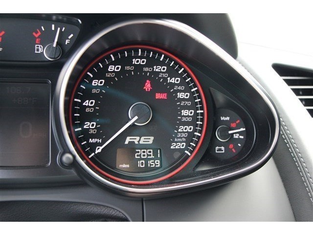 THE EXTERIOR OF THIS 2011 V10 R8 IS IN IMMACULATE CONDITION. THE CARBON SIDEBLADE LOOKS GREAT AND THE CAR HAS A NICE CURB APPEAL. THE INTERIOR IS ALSO PRISTINE WITH NO SIGN OF HEAVY WEAR OR ABUSE. THE PREVIOUS OWNER ALSO INSTALLED A CLEAR BRA ON THE FRONT AND REAR BUMPERS OF THE CAR. PLEASE SEE OUR PHOTO GALLERY TO APPRECIATE.