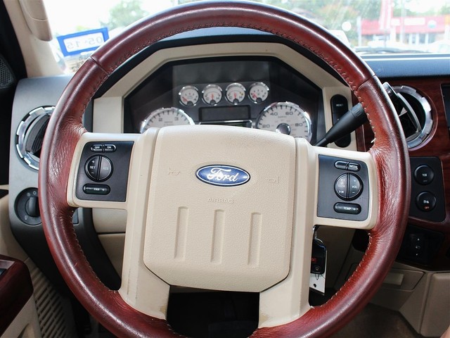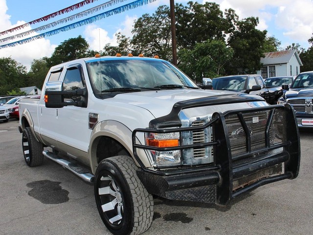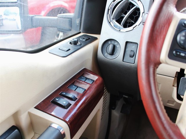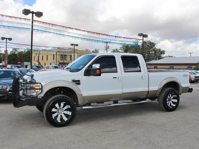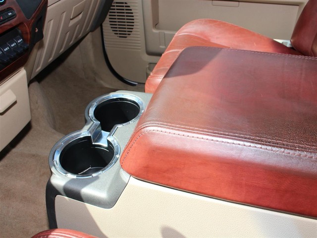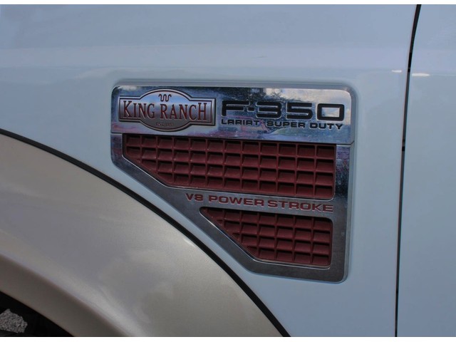 Rule the roads in this white & gold 2-tone 2008 Ford F-350 Super Duty King Ranch Lariat 4x4 Off Road Crew Cab pickup at a great deal! This luxury Ford is loaded with brown leather interior, a grill guard, bed liner, nerf bars, MP3, SIRIUS XM radio, DVD, Navigation, a backup camera, premium wheels, heated power seats, & fold away back seats for storage. This is a smoke free truck & the interior is absolutely free of rips, odors, or abuse. This vehicle's powerful 6.4 LTR V8 Turbo Diesel engine is in perfect working condition for excellent towing capacity! There are no noticeable dings on the exterior, & the shiny extra clean finish makes this used auto look like new. The tires have at least 3/4 of their life span left, & the mileage represented is 100% accurate. With a smooth shifting automatic transmission & all power equipment working properly, each ride will be one of adventure & pleasure!