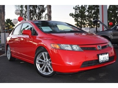 RED HOT SI!!!! LOADED WITH THE RIGHT STUFF!!! High output 4cyl motor, 6 speed manual, moonroof, plush signature interior, all power options, cd premium sound, spoiler, premium alloy wheels and more!!! ++ VERY HOT CAR ++ 6spd! Red Hot! #1 INDEPENDENT DEALER IN CALIFORNIA!!! Be the talk of the town when you roll down the street in this gas-saving 2007 Honda Civic. J.D. Power and Associates gave the 2007 Civic 4.5 out of 5 Power Circles for Overall Initial Quality Design. Edmunds.com said, "...Thanks to its frugal and clean engines, spunky performance and reputation for excellent reliability and durability, the Honda Civic has been a consistent benchmark for the economy car class ever since its introduction..." This Civic is a terrific car for short trips, long trips and everywhere in between. Fuel Efficient to let you go on and on before making that trip to the gas station. Hurry and don't miss this opportunity! East County Pre-Owned Superstore provides the highest quality used vehicles at the lowest prices available. #1 Independent Dealer in California, Financing Available for all types of credit, serving the communities of San Diego, Los Angeles, Riverside, Inland Empire, and Imperial County and the entire United States. International shipping available www.eastcountypreowned.com.