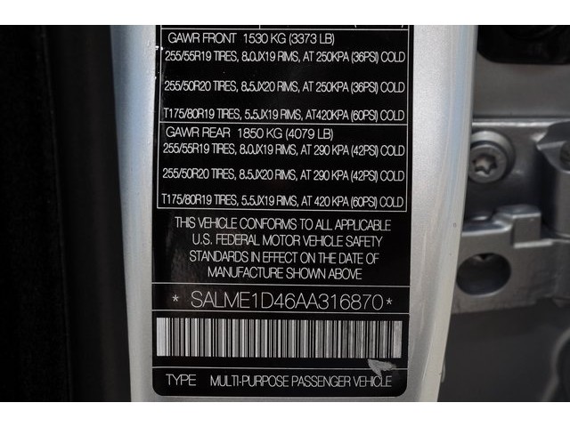 | |  | Year: 2010 |  | Make: Land Rover |  | Model: Range Rover |  | VIN: SALME1D46AA316870 |  | Stock Number: L1677A |  | Mileage: 44260 |  | Transmission: Automatic |  | Engine: 8 Cylinder, 5.0 L |  | Exterior Color: Silver |  | Interior Color: Other |  | Title: Clear |