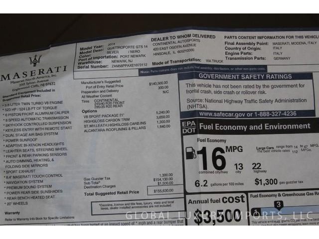 2-stage unlocking: remote ABS: 4-wheel Adjustable pedals Air filtration Aluminum accents Ambient lighting Antenna Type: diversity Antenna Type: mast Anti-theft system: alarm Anti-theft system: engine immobilizer Anti-theft system: perimeter alarm Ashtray: with lighter Auto-lock Auxiliary audio input: Bluetooth Auxiliary audio input: USB Auxiliary audio input: jack Auxiliary audio input: memory card slot Axle ratio: 4.10 Beverage cooler: cooled storage compartment Body side reinforcements: side impact door beams Braking assist Braking assist: hill descent control Cargo area floor mat Cargo area light Center console trim: wood Center console: front console with storage Child seat anchors: LATCH system Clock Cruise control Cupholders: front and rear Damper Control: electronic Dash trim: alloy and leather Daytime running lights Door handle color: chrome Door trim: leather and wood Drive mode selector Driver Information System Driver seat power adjustments: 8 Driver seat power adjustments: lumbar Driver seat: multi-level heating Easy entry: power steering wheel Electronic brakeforce distribution Electronic parking brake Emergency interior trunk release Exhaust tip color: stainless-steel Exhaust: dual exhaust tips Exterior mirrors: auto-dimming Exterior mirrors: heated Exterior mirrors: manual folding Exterior mirrors: power External temperature display Floor Mat Material: premium carpet Floor Mats: front and rear Front Spring Type: coil springs Front Suspension Classification: independent Front Suspension Type: double wishbones Front air conditioning zones: dual Front air conditioning: automatic climate control Front airbags: dual Front brake diameter: 15.0 Front brakes: ventilated disc Front bumper color: body-color Front fog lights Front headrests: 2 Front headrests: height adjustable Front seat type: bucket Front seatbelts: 3-point Front wipers: rain sensing Front wipers: variable intermittent Glove compartment: light Glove compartment: lockable Grille color: black with chrome accents Headlight cleaners: high pressure washers Headlights: Xenon Headlights: adaptive Headlights: self-leveling Heated windshield washer jets In-Dash CD: single CD/DVD Includes adjustable pedals Includes driver seat Includes exterior mirrors Includes steering wheel Inside rearview mirror: auto-dimming Laminated glass Leveling: self leveling suspension Limited slip differential Mirror color: body-color Mudguards Multi-function remote: hands-free multi-function remote with keyless ignition Multi-function remote: keyless Multi-function remote: proximity entry system Navigation system: touch screen display | Navigation system: with voice recognition Number of drivers: 2 Overhead console Parking sensors: front and rear Passenger airbag deactivation: occupant sensing deactivation Passenger seat power adjustments: 8 Passenger seat power adjustments: lumbar Passenger seat: multi-level heating Phone wireless data link: Bluetooth Power Power activated trunk/hatch: open Power door locks: remote Power outlet(s): two 12V Power steering: speed-proportional Power windows Radio: AM/FM Radio: touch screen display Reading lights: front and rear Rear Spring Type: coil springs Rear Suspension Classification: independent Rear Suspension Type: multi-link Rear brake diameter: 13.8 Rear brakes: ventilated disc Rear bumper color: body-color Rear defogger Rear headrests: 3 Rear headrests: height adjustable Rear seat center armrest: folding with storage Rear seat heat: vents Rear seat power adjustments Rear seat type: 40-20-40 split bench Rear seat type: bench Rear seat: heated second row Rear seat: reclining bench Rear view camera Rear view monitor: in dash Remote fuel filler door release Remote trunk release Retained accessory power Seatbelt force limiters: front Seatbelt pretensioners: front Seatbelt warning sensor: driver and passenger Second row seatbelts: 3-point Shift knob trim: leather and wood Side airbags: front Side curtain airbags: front and rear Spare tire kit: inflator kit Spare tire mount location: inside Spare tire size: full-size Spare wheel type: alloy Sport Suspension Stability control: electronic Stabilizer bar(s): front Stabilizer bar(s): rear Steering wheel mounted controls: audio and cruise controls Steering wheel mounted controls: paddle shifter Steering wheel trim: leather Steering wheel: power tilt and telescopic Storage: cargo net Storage: door pockets - front and rear Storage: front seatback Storage: in dash Storage: under seat Sunroof: one-touch Sunroof: power glass Sunroof: sliding sunshade Sunroof: tilt/slide Sunshade: power rear window Sunshade: power side window Tachometer Tail and brake lights: LED Tail and brake lights: rear center brakelight Tinted Tire Pressure Monitoring System Tire type: performance Total Number of Speakers: 10 Traction control Trip computer Trip odometer Universal remote transmitter: Homelink - garage door opener Upholstery: leather Vanity mirrors: dual illuminating Warnings and reminders: lamp failure Watts: 600 Wheel spokes: multi-spoke Wheel type: alloy Window trim: chrome Woodgrain accents coolant engine oil illuminated entry and panic alarm low fuel |