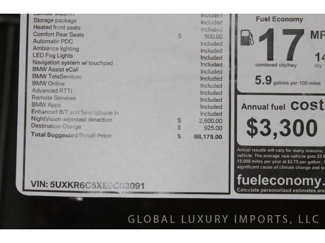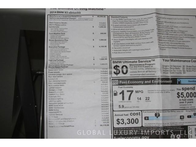 2-stage unlocking: remote ABS: 4-wheel Active head restraints: dual front Active head restraints: front and rear Air filtration: active charcoal Ambient lighting Antenna Type: diversity Anti-theft system: alarm Assist handle: front and rear Audio security system Auxiliary audio input: Bluetooth Auxiliary audio input: MP3 Auxiliary audio input: USB Auxiliary audio input: iPod Auxiliary audio input: jack Body side reinforcements: side impact door beams Brake drying Braking assist Cargo area light Cargo cover: retractable Center console trim: alloy and wood Center console: front console with storage Center differential: mechanical Child safety locks Child seat anchors: LATCH system Clock Cruise control Crumple zones: front Cupholders: front and rear Dash trim: alloy and wood Daytime running lights Descent Control Digital odometer Door handle color: body-color Door trim: alloy and wood Driver Information System Driver seat power adjustments: 20 Driver seat power adjustments: 4-way power lumbar Driver seat: heated Driver seat: height adjustable Easy entry: power steering wheel Electronic brakeforce distribution Emergency braking preparation Exhaust tip color: chrome Exhaust: dual exhaust tips Exterior mirrors: auto-dimming Exterior mirrors: integrated turn signals Exterior mirrors: power folding Exterior mirrors: reverse gear tilt External temperature display Floor Mat Material: carpet Floor Material: carpet Floor Mats: front and rear Front Shock Type: gas shock absorbers Front Spring Type: coil springs Front Suspension Classification: independent Front Suspension Type: double wishbones Front air conditioning zones: dual Front air conditioning: automatic climate control Front airbags: dual Front brakes: ventilated disc Front bumper color: body-color Front fog lights Front headrests: 2 Front headrests: driver seat active head restraint Front headrests: height adjustable Front headrests: passenger seat active head restraint Front headrests: power adjustable Front seat type: bucket Front seatbelts: 3-point Front wipers: rain sensing Front wipers: speed sensitive Front wipers: variable intermittent Fuel economy display: MPG Glove compartment: light Grille color: chrome Hands-free communication system Headlights: Auto on/off Headlights: Xenon Headlights: adaptive Headlights: auto delay off Headlights: cornering Headlights: dusk sensing Headlights: self-leveling Heated windshield wiper rests Impact sensor: alert system Impact sensor: battery disconnect Impact sensor: door unlock Impact sensor: fuel cut-off Impact sensor: post-collision safety system In-Dash CD: single disc Includes audio system Includes climate control Includes driver seat Includes exterior mirrors Includes steering wheel Inside rearview mirror: auto-dimming Keyless ignition: push-button start Liftgate window: fixed Limited slip differential: center Lockout button MP3 player: CD MP3 Playback Mirror color: body-color Moonroof: one-touch open/close Moonroof: power glass | Moonroof: remote operation Moonroof: tilt/slide Multi-function display Multi-function remote: keyless entry Multi-function remote: trunk release Multi-functional information center Navigation system: hard drive navigation system Navigation system: hard drive navigation system w/voice activation Navigation system: touch screen display Navigation system: with voice recognition Number of drivers: 2 One-touch windows: 4 Parking sensors: front and rear Passenger airbag deactivation: occupant sensing deactivation Passenger seat adjustments: lumbar Passenger seat power adjustments: 20 Passenger seat: heated Passenger seat: height adjustable Phone wireless data link: Bluetooth Power Power door locks: remote Power door locks: speed sensitive central locking Power outlet(s): 12V cargo area Power outlet(s): 12V front Power outlet(s): 12V rear Power steering: variable power-assisted steering Power windows Power windows: remote operation Privacy glass Radio Data System Radio: AM/FM Radio: HD radio Reading lights: front and rear Real Time Traffic Rear Shock Type: gas shock absorbers Rear Spring Type: coil springs Rear Suspension Classification: independent Rear Suspension Type: multi-link Rear audio: separate rear audio Rear brakes: ventilated disc Rear bumper color: body-color Rear defogger Rear door type: power liftgate Rear headrests: 3 Rear headrests: Adjustable Rear seat center armrest: folding with storage Rear seat heat: vents Rear seat type: 40-20-40 split bench Rear seat: split folding Rear spoiler Rear spoiler color: body-color Rear view camera Rear wiper: intermittent Regenerative Braking System Remote trunk release Residual Heat Distribution Retained accessory power Roll Stability Control Roof rack Roof rack color: black Run flat tires Satellite Radio: ready Satellite communications: BMW Assist Seatbelt force limiters: front Seatbelt pretensioners: front Seatbelt warning sensor: driver and passenger Second row seatbelts: 3-point Shift knob trim: alloy Side airbags: front Side curtain airbags: front and rear Side-curtain airbag rollover sensor Speed Sensitive Volume Control Stability control: electronic Stabilizer bar(s): front Stabilizer bar(s): rear Steering wheel mounted controls: audio and cruise controls Steering wheel mounted controls: phone Steering wheel trim: leather Steering wheel: power tilt and telescopic Storage: cargo tie-down anchors and hooks Storage: door pockets Storage: front seatback Subwoofer: 2 Tachometer Tail and brake lights: LED Taillights: adaptive Tire Pressure Monitoring System Tire type: all season Total Number of Speakers: 10 Traction control Trailer wiring Trip computer Trip odometer Universal remote transmitter: garage door opener Upholstery: leather Vanity mirrors: dual illuminating Warnings and reminders: lamp failure Watts: 205 Wheel type: alloy Window trim: chrome Wood-tone accents coolant engine oil low fuel |