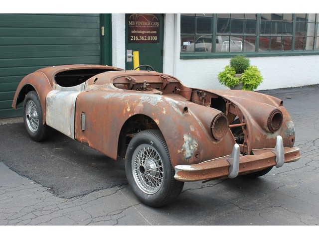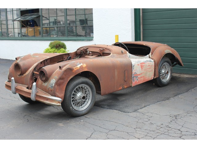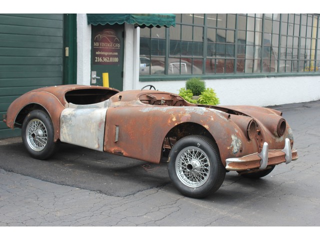 Chassis# A811768 A 1956 XK150 Roadster, rolling body only. The paint is stripped down to the bare metal. Rolls and steers fine for transportation purposes. Comes with only the pieces and parts you see in the pictures. Any questions welcome. Please message or call Frank at 2166452100. (We can help to make arrangements for worldwide shipping.) |
