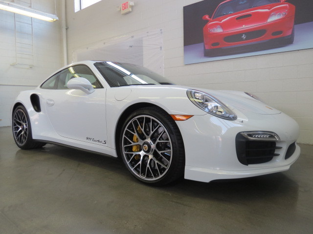 We have ONE, VERY FEW AVAILABLE FOR IMMEDIATE DELIVERY, Local Charlotte Car, Comes with Only 589 miles, This Outstanding Porsche 911 Turbo S, Comes Equipped with a 3.8L Twin Turbo Horiizontally Opposed 6 Cylinder Aluminum Engine, Producing a 560hp at 6750 rpm. Water Cooled Engine, Direct Fuel Injection. Standard Equipment Consist of McPherson Strut Front Suspension and Multi Link LSA Rear Suspension with Anti Roll Bar, All Wheel Drive PDK 7 speed transmission, Porsche ACTIVE Stability Management, PASM, PSM, ABS, ASR, ABD, PTV. Brakes on this beast consist of the Finest Porsche Ceramic Composite Brake PCCD, 410 MM FRONT, With 390MM internally ventilated and crossed drilled carbon brake discs. CONFORT Consist of Sport Design Steering Wheel w/paddle Shifters, Universal Audio Interface, Sirius XM, Bluetooth, Led Headlights, Homelink, a 7 inch Navigation Screen with 12 Speakers and 445 Watts. Also includes Sport Design Wing Mirror on Door Panels and Adaptive Sport Seats Plus 18 way Electric seat function.