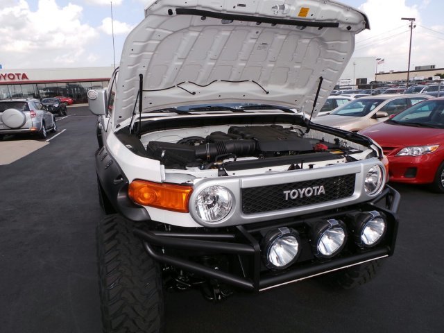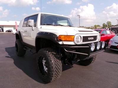 The 2014 Toyota FJ Cruiser is a tribute to the legendary FJ40 Land Cruiser sold worldwide between 1960 and 1984. This muscular truck has a bold modern look with geometric angles, and a low-profile rectangular grille flanked on either side by inset round headlights. Its strong appearance is complimented by its bulging fenders, 32-inch tires, 3 wiper arms, and available floodlights on the outside mirrors. The overall design is a tribute to Original FJ. The 2014 Toyota FJ Cruiser is as equally welcome on road as it is off. It can go over just about anything it can clear due to its electronically controlled traction control, steep approach and departure angles, huge tires and 9.6 inches of ground clearance. The FJ Cruiser is offered in 3 exciting models. There is a Rear-Wheel Drive and a Part-time Four-Wheel Drive which both have a 5-Speed Automatic transmission, as well as a Full-time 4x4 with a 6-speed Manual. It has a 4.0-Liter, V6 engine with 260 Horsepower, 271 lb.-ft. of torque at 4400 rpm, and Dual Independent Variable Valve Timing with intelligence. The FJ has electronic traction controls and locking differentials for improved Off-road capability. It has an independent front suspension and solid rear axle, and its maximum towing capacity is 5,000 pounds. The interior or the FJ is a perfect balance between being modern and comfortable as well as rugged and functional. It is easy to maintain and use as well, with rubber flooring, water-resistant fabric on the seats, and large control knobs that are easy to grab even if you have gloves on. For safety, it comes standard with Smart Stop Technology, Vehicle Stability Control, Traction Control, Side-Impact Door Beams, Tire Pressure Monitor System, and more. If you are looking for an SUV built to easily handle the rigors of your day-to-day, and then whatever adventure and location the weekend brings, look no further than the 2014 Toyota FJ Cruiser.Four Wheel Drive, Power Steering, ABS, 4-Wheel Disc Brakes, Brake Assist.