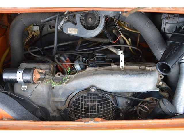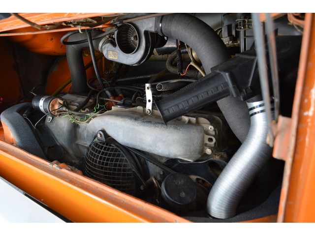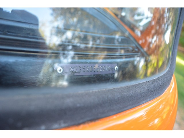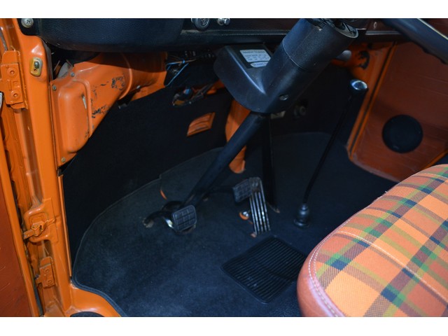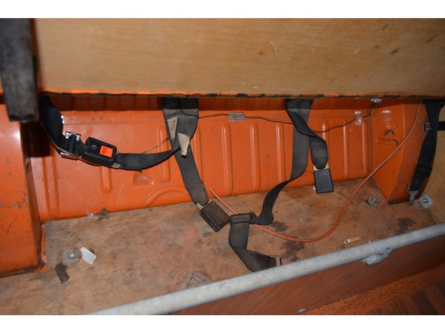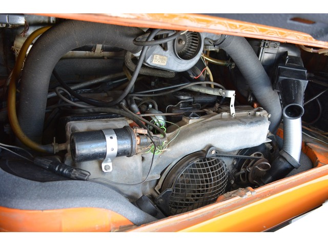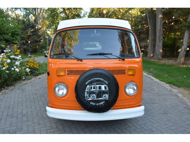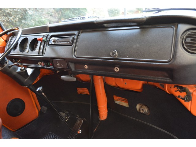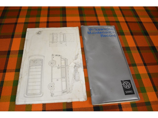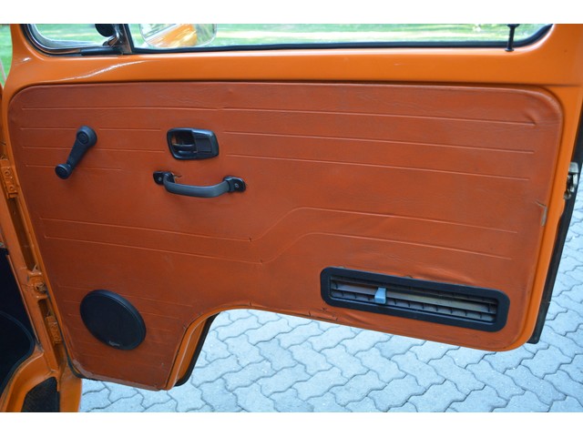 This Volkswagen Westy Campmobile has a strong 1.8 Liter type 4 air-cooled - four cylinder motor in it and it is running well! The engine is backed by a smooth four speed transmission / transaxle. The ORIGINAL interior is in NICE restored condition including NICE ORIGINAL re-covered Orange plaid bucket seats up front, NICE ORIGINAL Black dash, NICE ORIGINAL Style Black carpet up front, NICE ORIGINAL White wood headliner, NICE ORIGINAL door panels, NICE ORIGINAL gauge cluster, NICE custom matching Orange plaid center padded armrest and console with inside storage. NICE ORIGINAL steering wheel. The ORIGINAL rear / Camper part of the interior is also in GREAT condition including a NICE ORIGINAL fold out bed, NICE ORIGINAL table, VERY NICE Original Orange plaid rear seat / bed, NICE ORIGINAL Orange plaid upper bed in Pop-top, lots of factory storage areas and closets, and where the sink was removed it is now a seat with storage below, wing style side windows and louvered side windows for ventilation, NICE wall and roof paneling and nice sliding cloth curtains throughout. Check out the Hardwood floor area shown in several pictures below, Beautiful and more practical than the original carpet!! This Classic VW is nicely equipped including an awesome Alpine Digital AM FM stereo radio / CD player / MP3 player or phone input / USB port with two Infinity speakers mounted in doors up front and two Alpine 6X9 speakers mounted in back, working turn signals so it is legal in all the states, good heater and defroster, three 110 volt household electrical plug ins, Original Ice box / Storage cabinet with AC outlet, original day / night rear view mirror, factory 3-point seat belts in front, factory rear seatbelts and factory dual chrome exterior mirrors. This VW Campmobile is a great running and good looking Bus for sure. It drives smooth and straight and does not wonder, it is truly a one finger driver. I took it out on the freeway several times and it also did very well at normal freeway speeds. All of the light lenses and reflectors are still bright, clear and in good condition even the rubber weather-stripping is new. These vehicles have an appreciative group of owners any of which would be pleased to own this one. The suspension and drive train seem to be in good working order as well as the electrical system.
