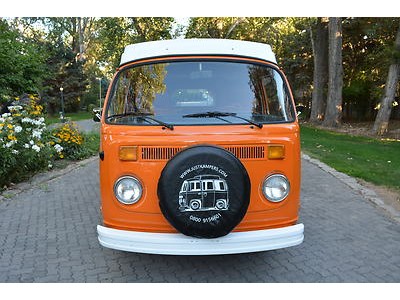 This is a BEAUTIFUL 3-Owner 1975 VW - "Westfalia" - Campmobile Bus. We bought this bus from the 3rd owner, and as you can see in the pictures it was his pride and joy and in Incredible shape! Careful not to let this 1975, well cared for, bus get away. They are hard to find in this Beautiful condition! This three-owner bus was sold New in southern California and lived there until 2007 when it moved to the Sacramento area. This bus is Tailgate, Concert and Camp ready and cruises nice. I am told most of these Buses all have names and this one is "Orangee" named by the Previous owner's granddaughter and he lived in Orangevale, CA. It still retains its ORIGINAL POP-Top with original bed in it and new canvas canopy. I have read that the "Westfalia" is the most desirable in the Campmobile line. It also still retains its various correctly mounted VW factory data plates and Westfalia and Campmobile badges also shown in several pictures below. What a value it is at the reserve price which is set very low ! Take a look at the lines on this beauty, what an amazing looking Bus. This BEAUTY is one nice driving rig and is solid and in AWESOME shape. I drove this bus for about a week as my everyday driver to and from the office and running errands as needed and it ran and drove nice! It is a NICE - DRY - California Bus for its whole life!! If you can make it to Boise in the next ten days please come look at and drive this Beauty for yourself. You won't be disappointed!!
