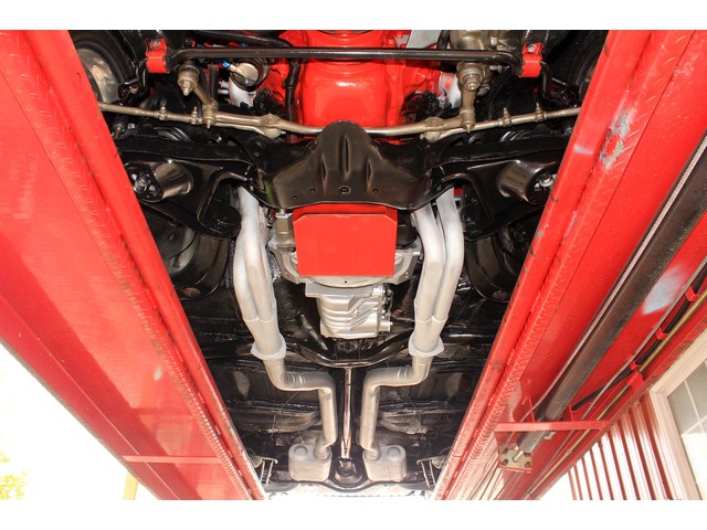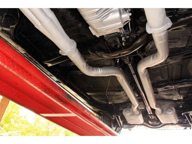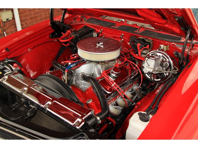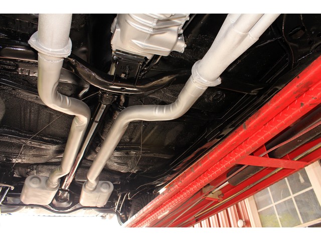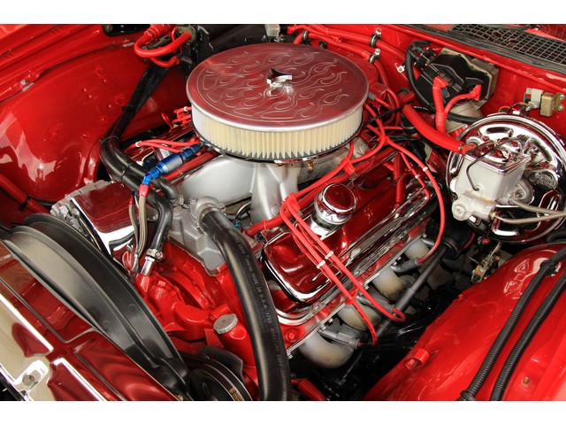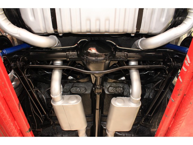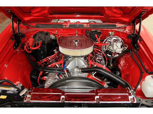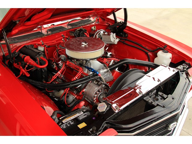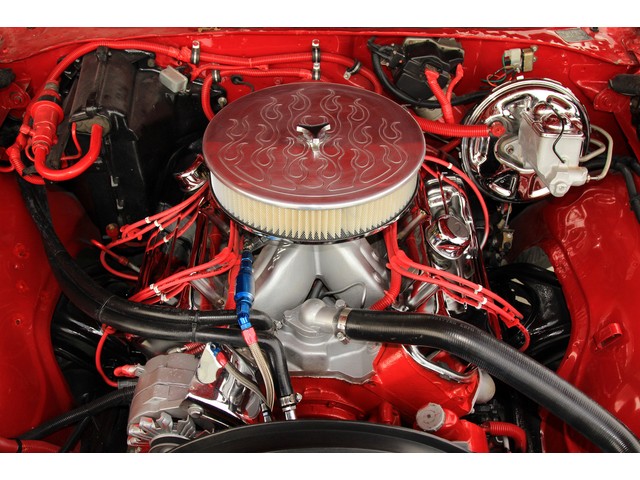 Finally, we will take a look at the heartbeat of the Chevy. Under the hood it’s powered by a ’69 Model 396 Big Block that is hooked to a Muncie 4 Speed Trans and 10 Bolt Rear End. It has an aluminum intake with a Holley Carb, Chrome Valve covers and breather. The exhaust flows though as set of headers and 3” Flow master Exhaust. To keep it cool it has a 4 core radiator. The steering is power as well as have Power Disc Brakes. All the inner fenders and firewall is painted to match the outside of the car. Under this Chevelle it has front and rear sway bars. When you look at the floors they look good with no visible signs of any damage.