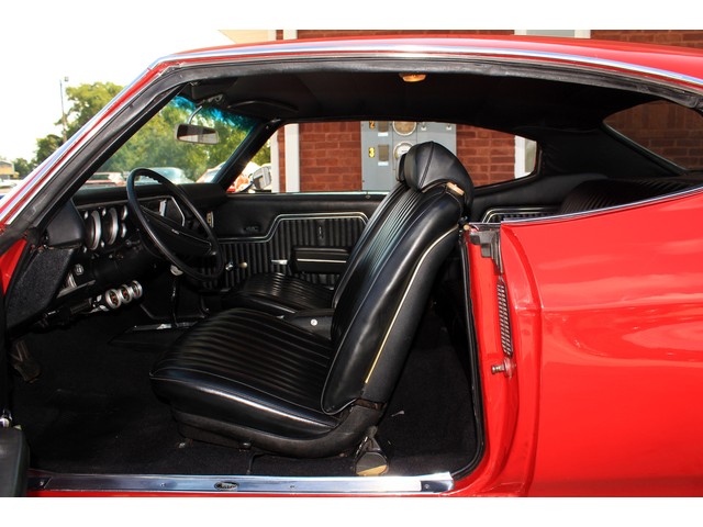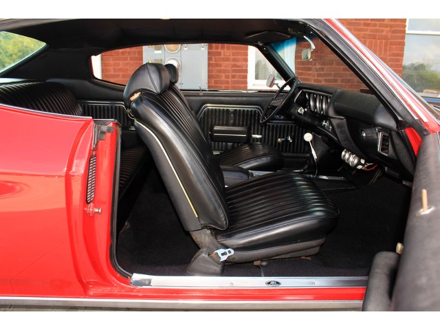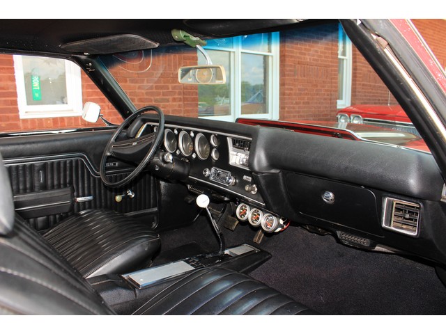Next, we will take a look at the interior of the ’72. Everything on the inside complements the exterior perfectly. It’s done in classic black with bucket seats and console with a Hurst Shifter. It has the round gauge dash. A set of aftermarket gauges were added under the dash. The interior looks very good with a good dash pad and carpet. It has a tilt column and a vintage Radio.