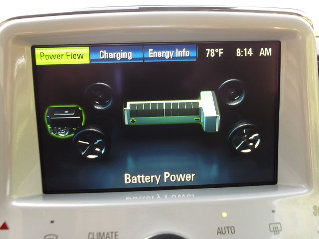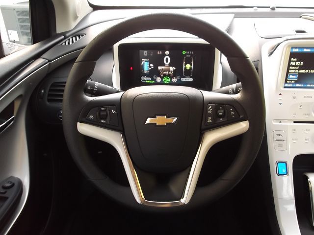 Inside you'll find all seating finished in a textured black cloth. Carpets and door panels are also done in black. The dash is black with white trim. The Volt is very nicely laid out with a center master touch screen.