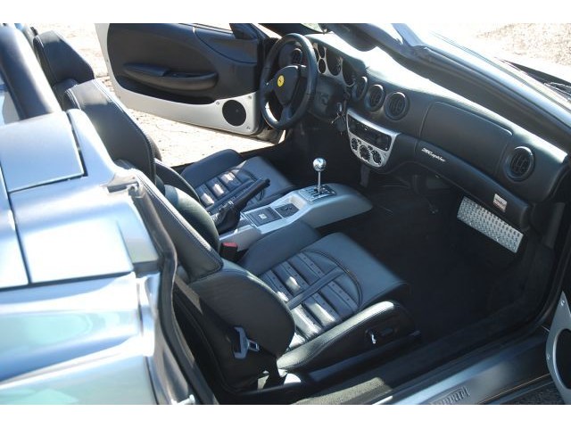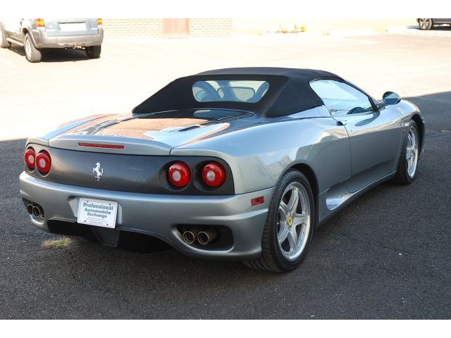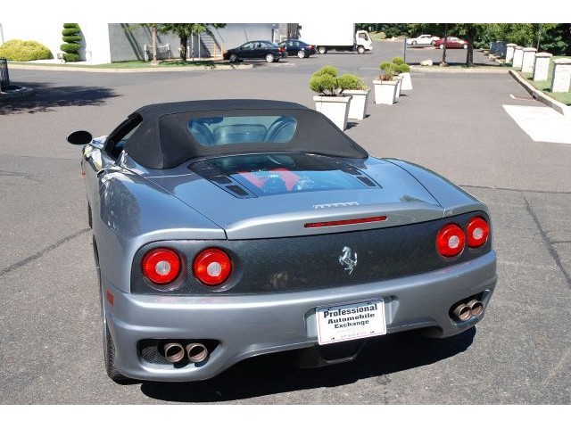 2004 Ferrari 360 spider Titanium /black/black with a 6spd manual transmission. This heavily optioned car has always been serviced by the authorized Ferrari dealers. The following is a list of the factory options: Scuderia shields, front and rear challenge grills, black calipers, modular wheels, hifi subwoofer ,power Daytona style seats with grey inserts, factory race exhaust, carbon fiber kit for engine compartment, I cant remember seeing a better equipped 360. The 6spd manual stick shift makes this an incredibly fun car to drive!!! See it at www.pro-auto.com or call 215-633-0775