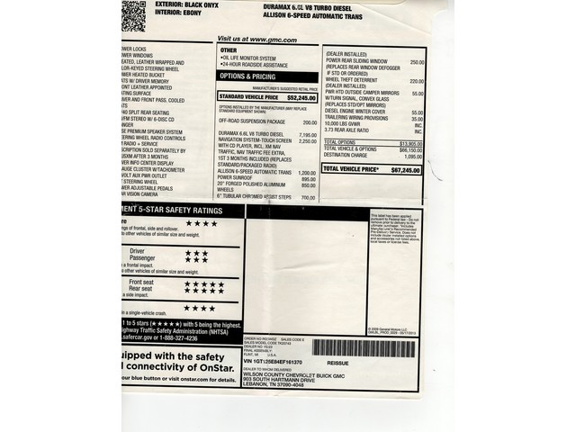 The winning bidder will be contacted via email after the auction closes or he/she must contact Brian Griz with Wilson County Chevrolet Buick GMS within 24 hours to proceed with payment and delivery arrangements.