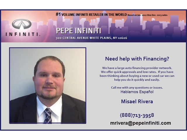 Thank You for looking at this vehicle on E-bay. Still have questions? Call our E-bay Sales Representative, Misael Rivera 888-713-3958 or simply e-mail him at mrivera@pepeinfiniti.com, Hablamos Espanol